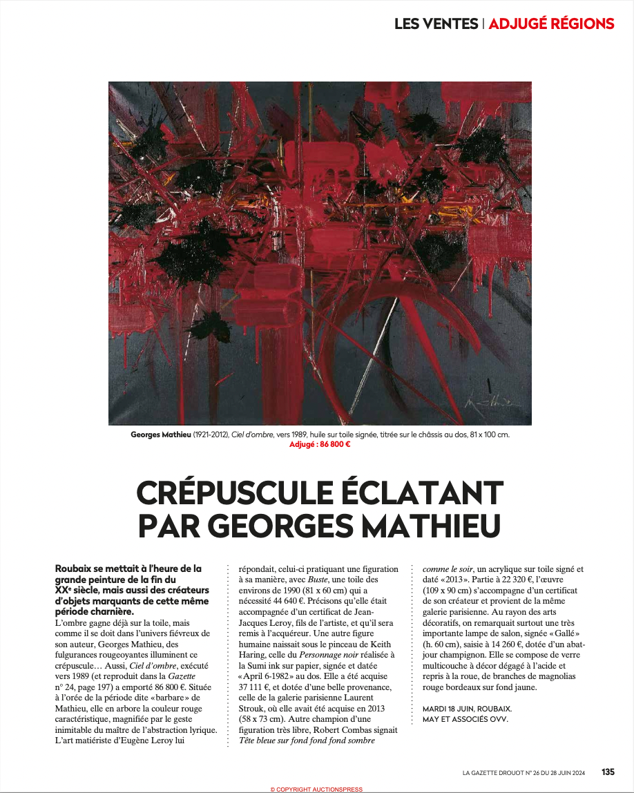Sa passion et sa pugnacité à découvrir des œuvres de grande qualité lui ont permis de réaliser de très belles ventes depuis 25 ans.